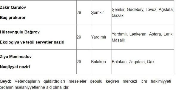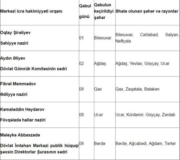 Nazirlərin iyul ayı üçün qəbul günləri – CƏDVƏL