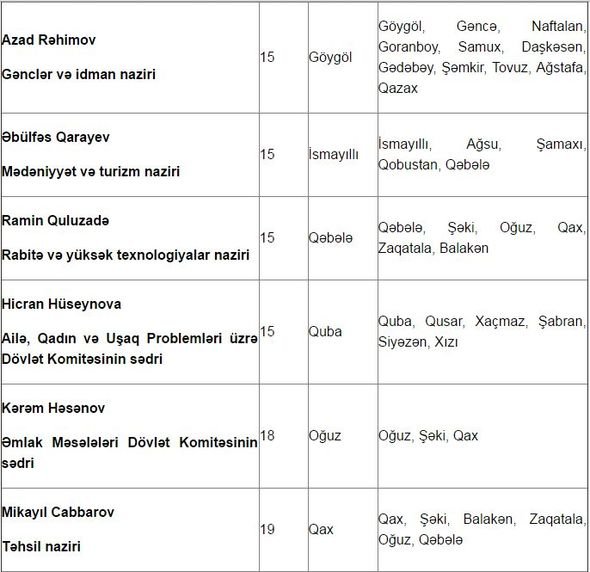 AzNews.info AZƏRTAC-a istinadən həmin cədvəli təqdim edir: