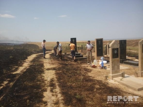 Şabran ərazisində yerləşən Xaltan qəbirstanlığında yanğın başlayıb.