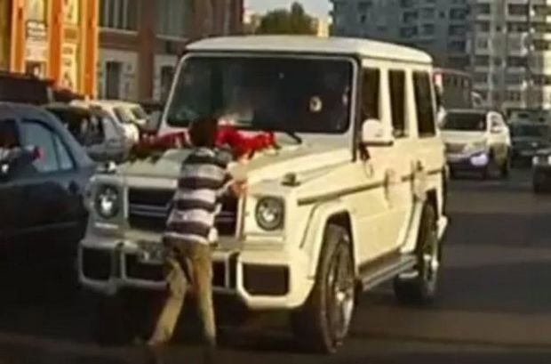 Bakıda “Galendewagen” qarşısını kəsən adamı “sürüdü” – VİDEO